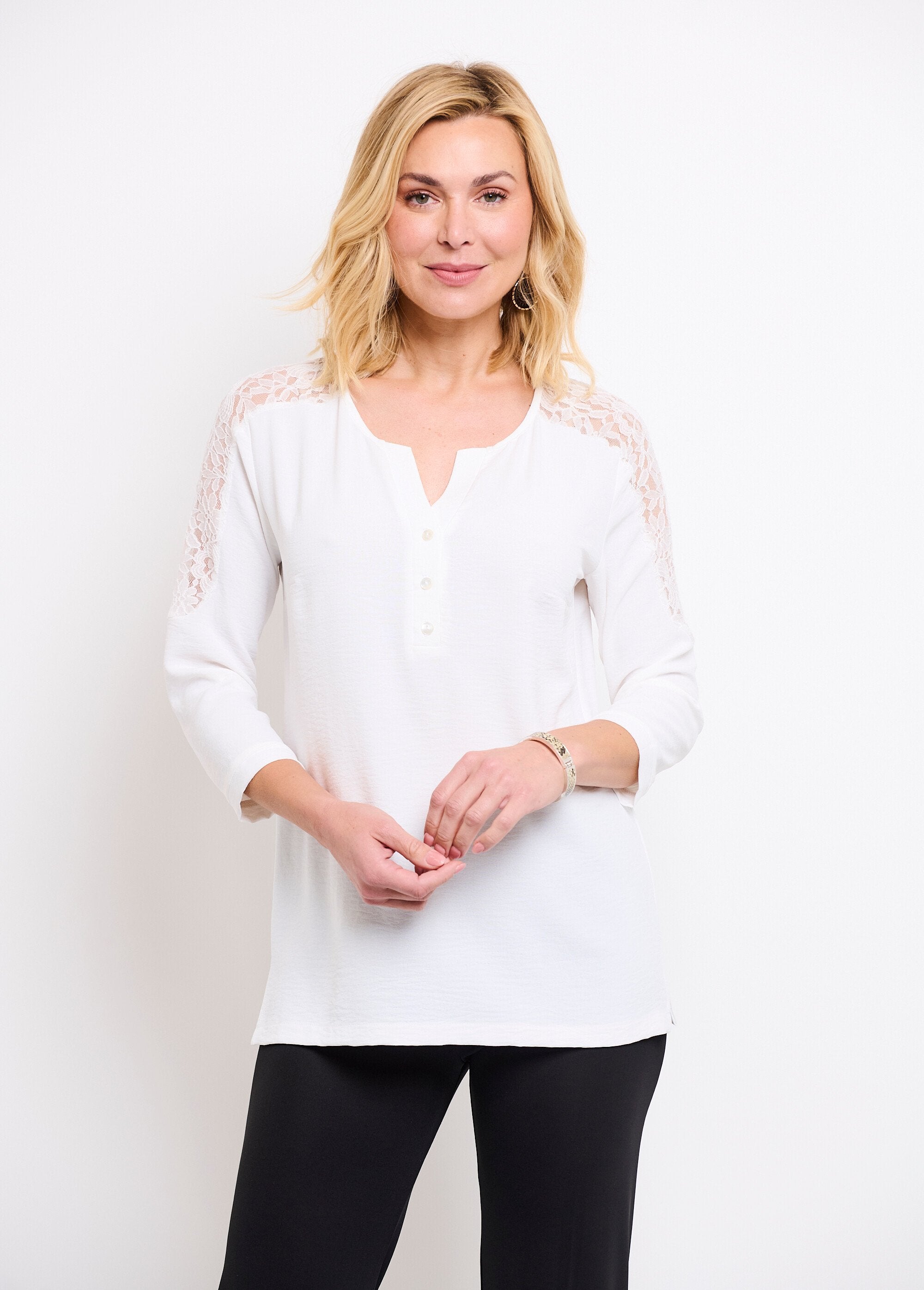 Tunic_with_3/4_sleeves,_V-neck,_buttoned_lace_Ecru_FA1_slim Tunic_with_3/4_sleeves,_V-neck,_buttoned_lace_Ecru_FA2_slim