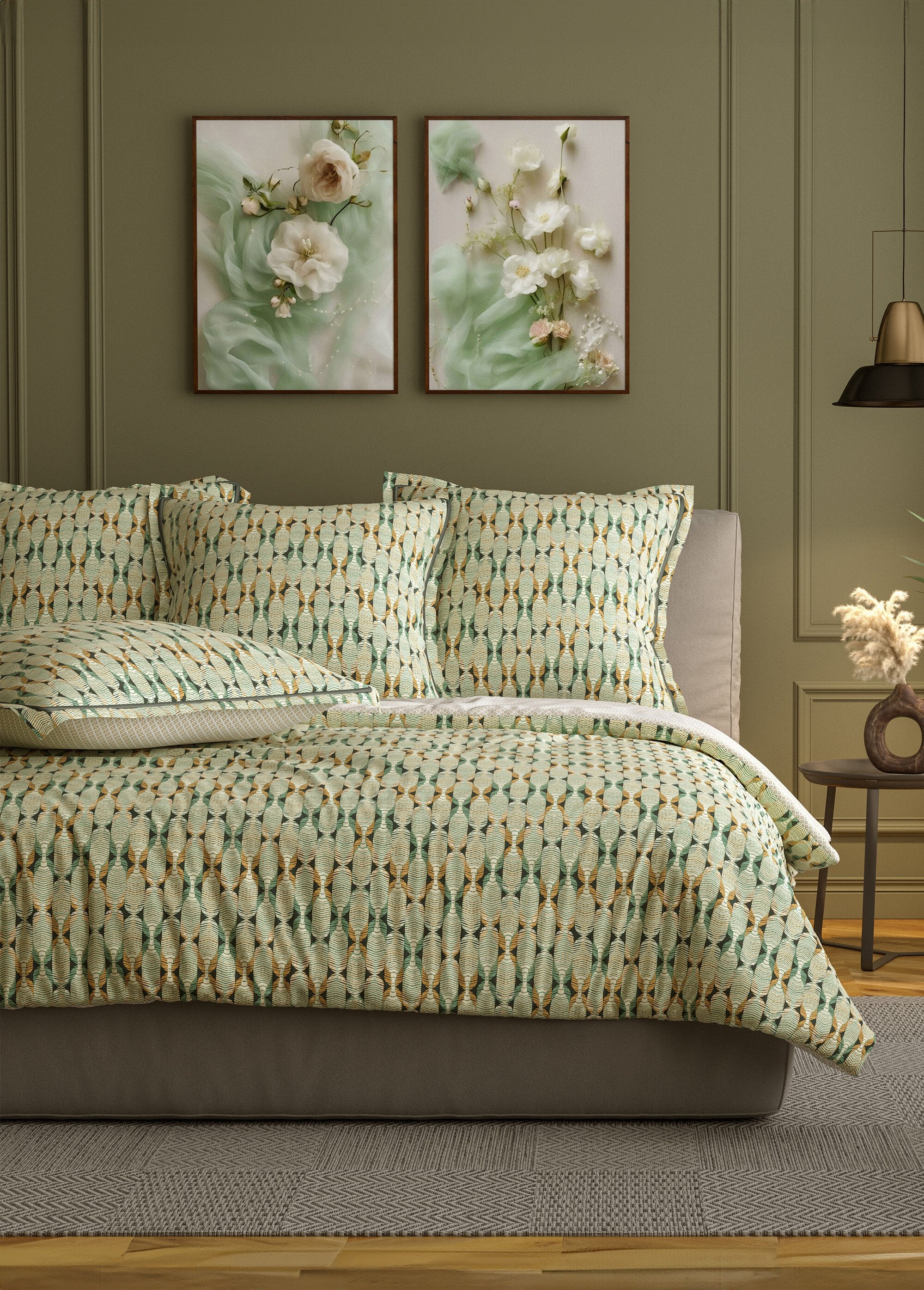 Ontdek onze 3-delige bedset, een combinatie van comfort en etnische stijl. Dit dekbedovertrek en twee kussenslopen zijn gemaakt van een zachte, ademende stof, ideaal voor een rustige nachtrust. Het ontwerp, geïnspireerd op traditionele motieven, voegt een vleugje originaliteit toe aan je slaapkamer. Gemaakt van een kwaliteitsstof met 57 draden per cm² en gemakkelijk te onderhouden, is deze set perfect voor wie op zoek is naar zowel stijl als functionaliteit. Transformeer je ruimte met deze set die uitnodigt om te ontspannen en te ontsnappen.