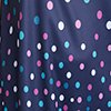 De hostess jurk, een verleidelijke en comfortabele aanwinst die het silhouet omhult in sierlijke satijnen vloeiendheid. Volle vlindermouwen afgewerkt met een hommel. Satijnen biais bij de ronde halslijn. Mooie marineprint met bloemenbasis en stippen voor extra vrouwelijkheid. Dubbele stiksels aan rechterzoom.