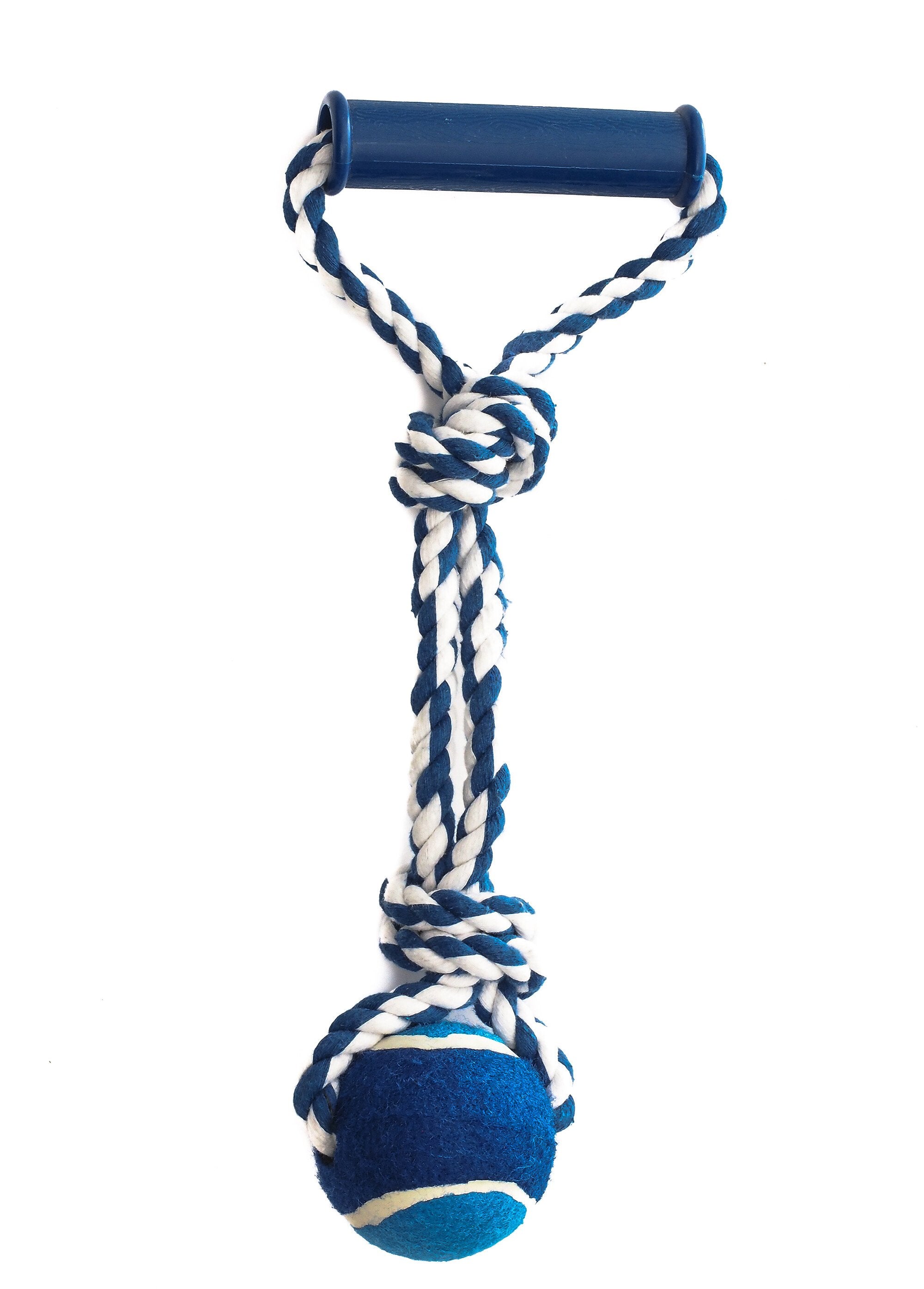 Een klassiek hondenspeeltje: een stevig touw met een tennisbal. Dit speeltje is ontworpen voor intensieve speeltijd en is ideaal voor bijten, kauwen en beweging. De duurzame constructie helpt destructief gedrag te verminderen en ondersteunt een optimale gebitshygiëne. Het trekspeelgoed versterkt de band tussen jou en je hond, waardoor elke speelsessie leuker en belonender wordt. Geef je hond een speeltje dat plezier en welzijn combineert!