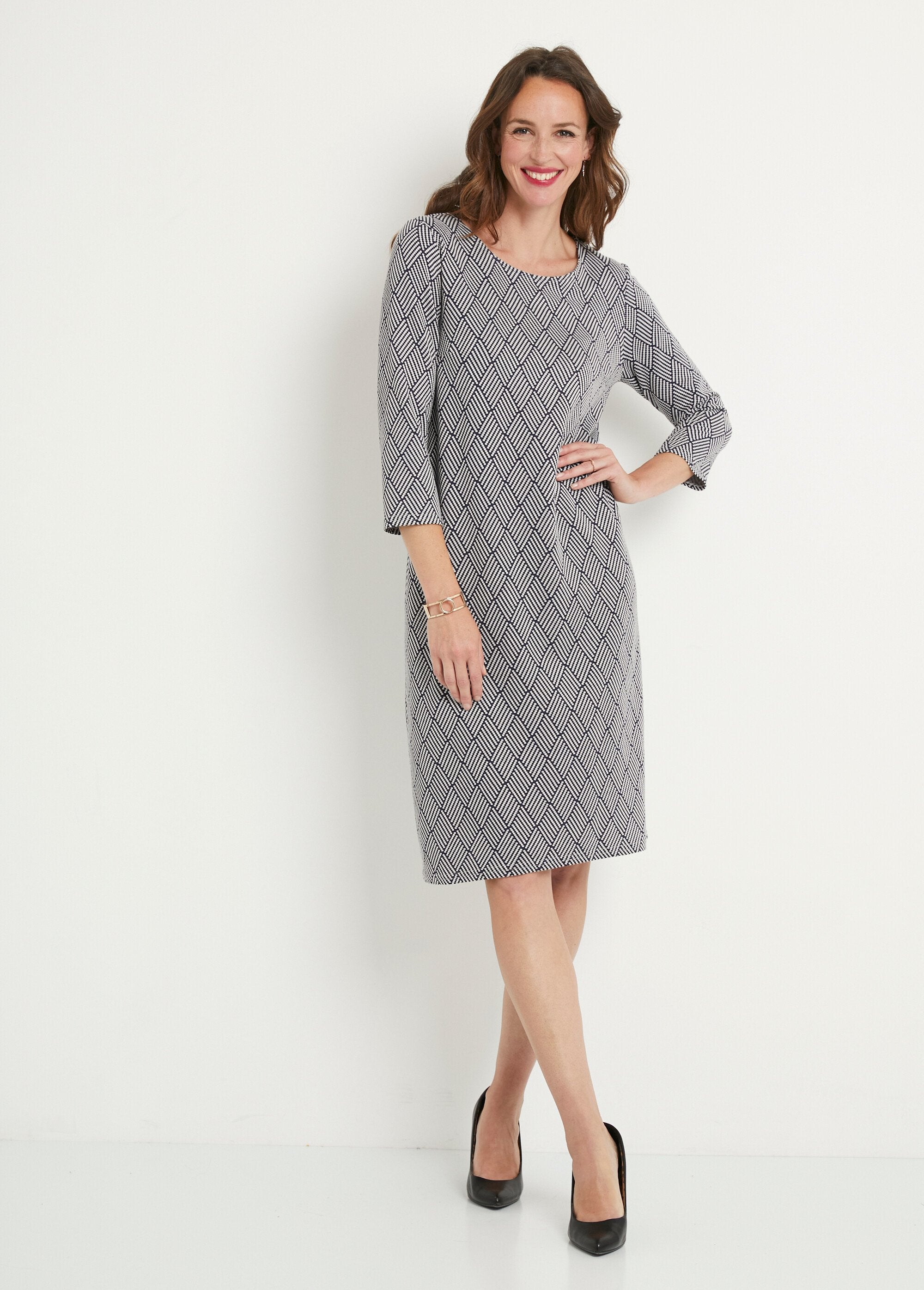 Robe_courte_droite_jacquard_graphique_Marine_et_ecru_DO1_slim