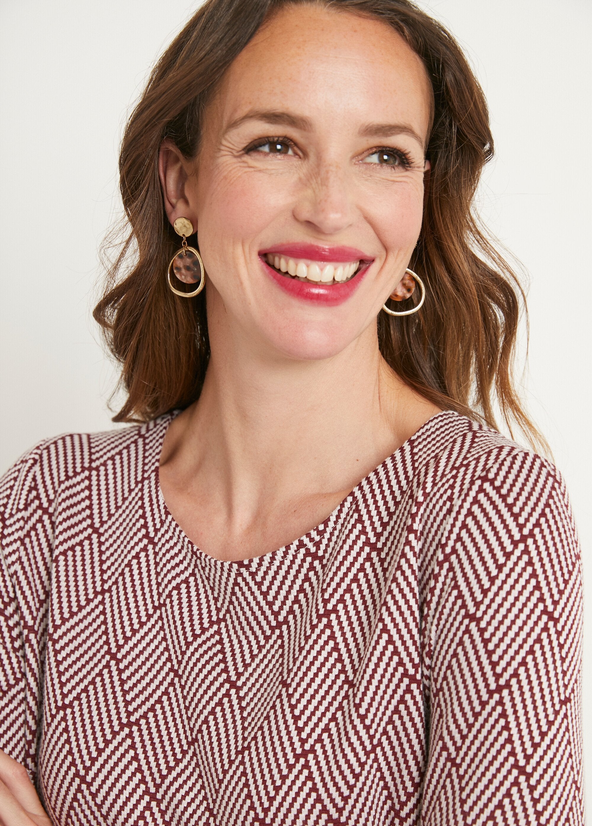 Ligne droite, maille confortable, allure moderne... La robe femme fait entrer la fantaisie dans le vestiaire d'hiver. Adaptée aux petites comme aux grandes tailles, sa coupe est sobre mais efficace : col rond, manches 3/4, base droite. Fabrication française.
